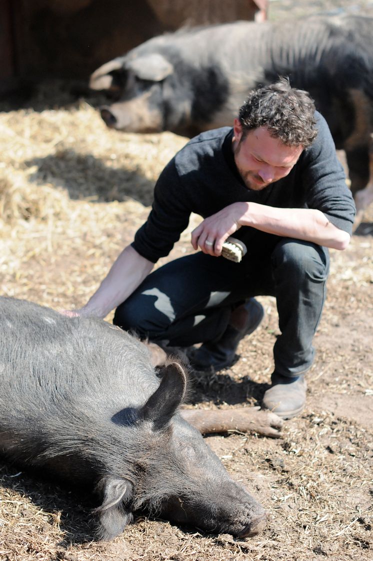 Gabriel Walldén på Dalängarna i Kivik föder upp renrasiga Linderödssvin