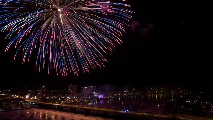 I tillägg till detta kommer det skjutas fyrverkerier som kan ses från stora delar av stan, längs med älven och på broar i närheten av centrum. Fyrverkerierna kommer att avfyras från en ny plats med fyrverkeripjäser som går högre upp mot skyn och därför kommer synas bättre på större avstånd. Man behöver alltså inte befinna sig nära uppskjutningsplatsen för att njuta av prakten.