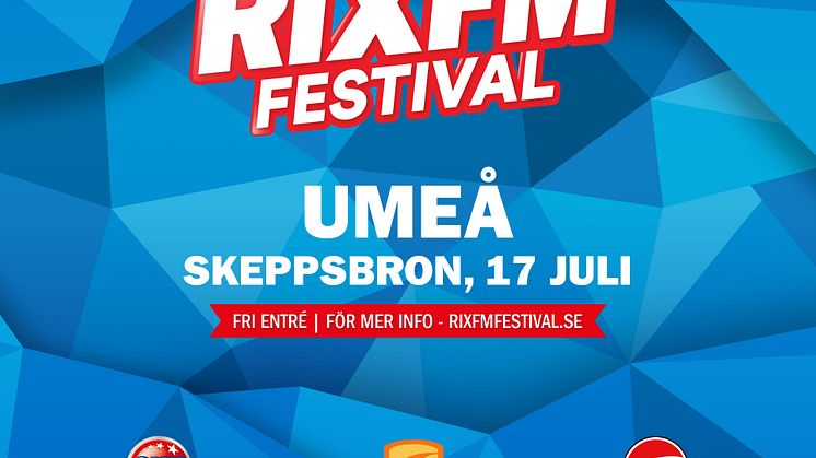 RIX FM Festival presenteras av Viaplay i samarbete med OLW, Ingo, Pepsi, McDonald’s, Elitfönster och Pengapeppen. Festivalen har alltid fri entré och stoppet i Umeå den 17 juli är det andra av totalt 12 i landet. Årets artister offentliggörs vid ett senare tillfälle. Förra året gästades festivalen av över en kvarts miljon besökare, vilket gör RIX FM Festival till den i särklass största festivalen i Sverige.