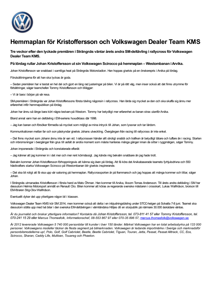 Hemmaplan för Kristoffersson och Volkswagen Dealer Team KMS