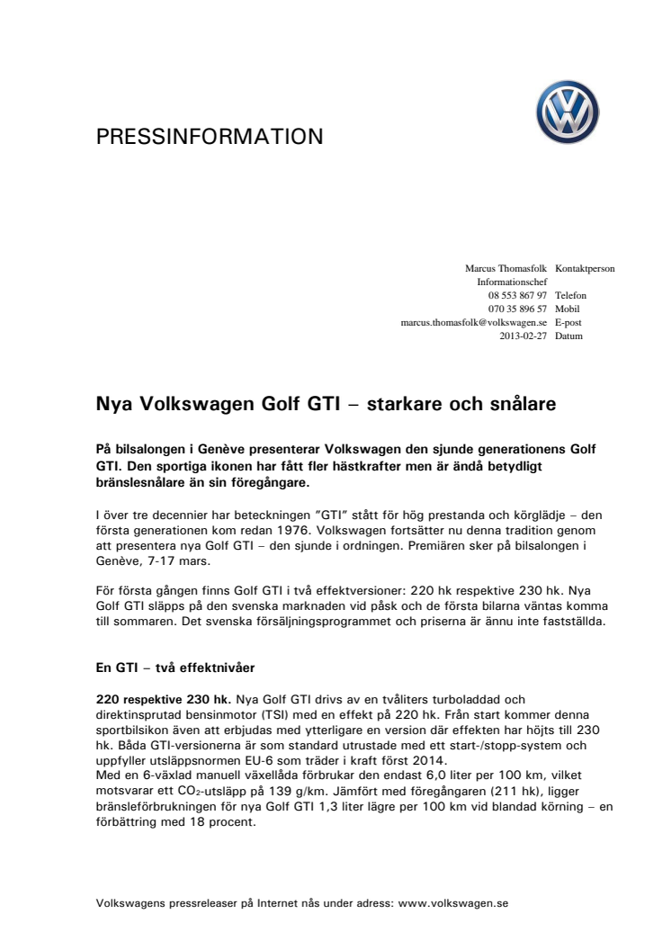 Nya Volkswagen Golf GTI – starkare och snålare