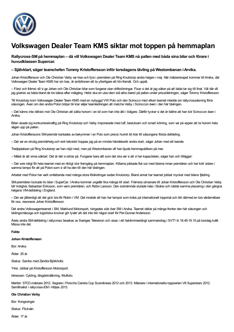 Rallycross-SM på hemmaplan – då vill Volkswagen Dealer Team KMS nå pallen med båda sina bilar och förare i huvudklassen Supercar.