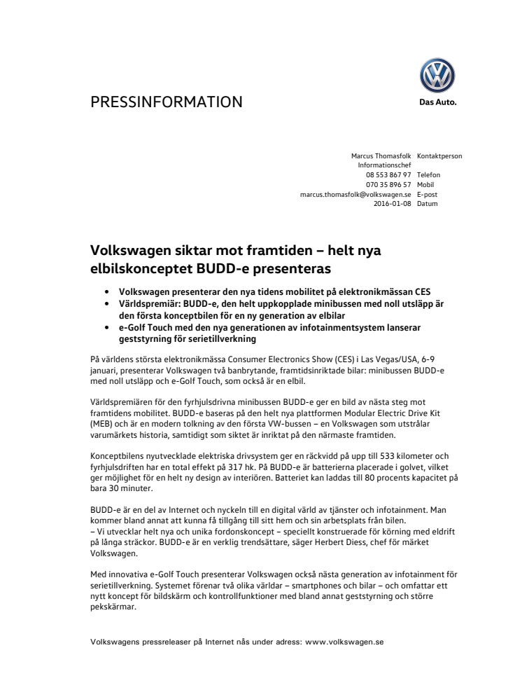 - Världspremiär: BUDD-e, den helt uppkopplade minibussen med noll utsläpp är den första konceptbilen för en ny generation av elbilar