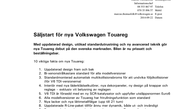 Är du journalist och önskar ytterligare information? Kontakta då Marcus Thomasfolk, Informationschef, 08-553 867 97 eller 070-35 896 57, marcus.thomasfolk@volkswagen.se