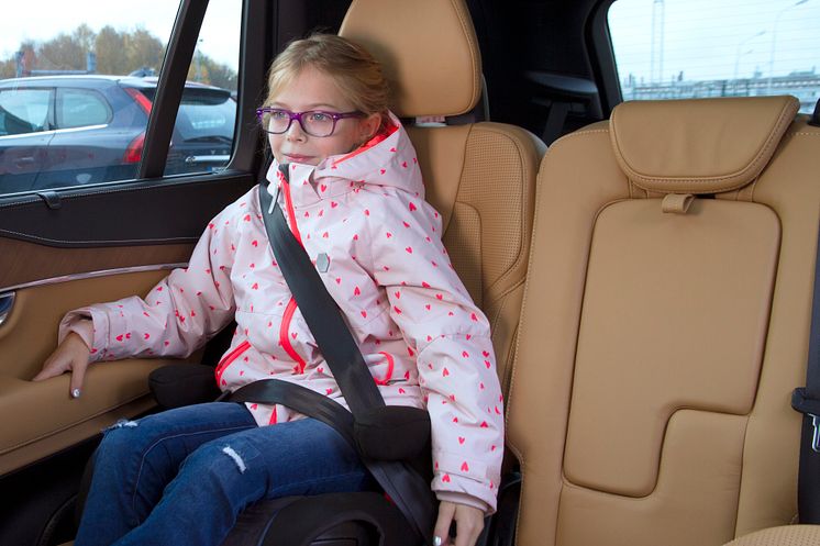 FEL! Trepunktsbältet ska ligga tätt mot kroppen, utan ytterkläder emellan.