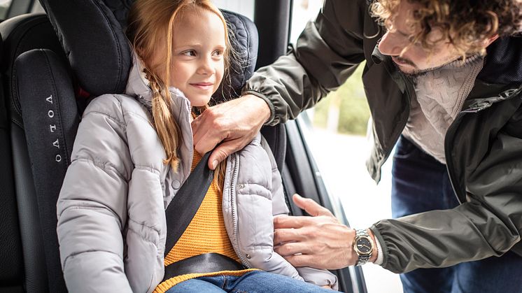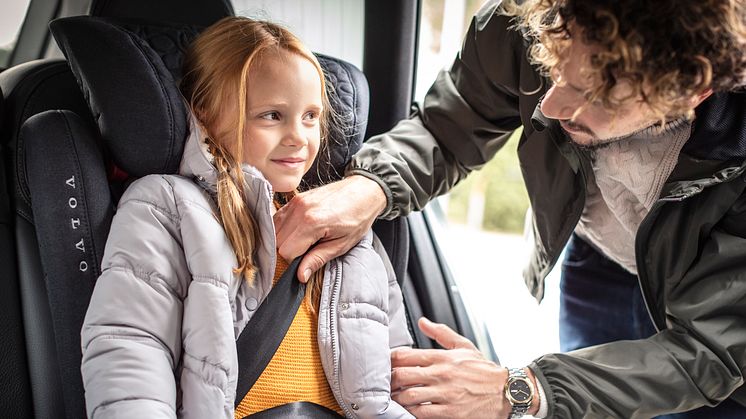 – Det är inte alltid det enklaste att få barnen att ta av en varm jacka i en kall bil, men det är värt det. För barn som sitter framåtvända bidrar de tjocka kläderna ofta till att bältet glider för långt ut på axeln eller upp på magen. När barnet inte fångas upp på rätt sätt av bältet vid en krock är risken stor för skador till exempel i magen eller på huvud och nacke, säger Sofia Bergfors, barnsäkerhetsexpert på Volvia.