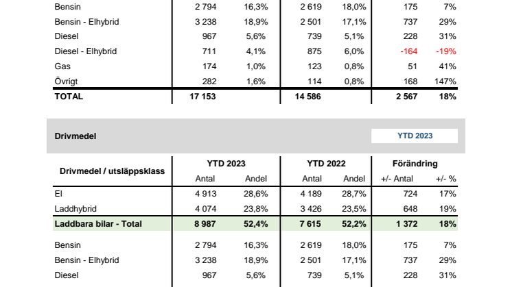 Personbil | 17 153 | +18% | 17 153 | +18% |