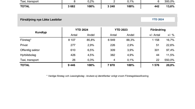 Lätt lastbil(<3,5t) | 4 154 | +14% | 10 483 | +17% |