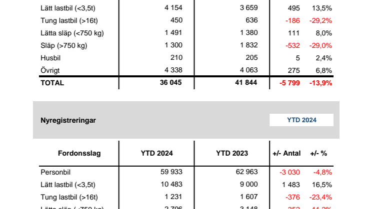 Utveckling vs 2023 (antal bilar) | -1 599 | -2 937 |