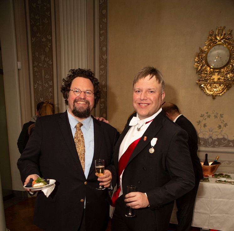 Edward Blom och "Royal Roger" Lundgren under minglet i Kungliga väntsalen