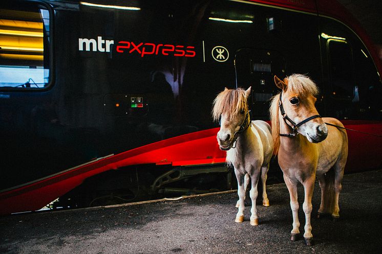 Minihästar dyker upp på Göteborgs Central Station. Hästarna hette Merrylegs fantastic Freddy, 6 År och Pekarnas heart of Rambo 4 år.