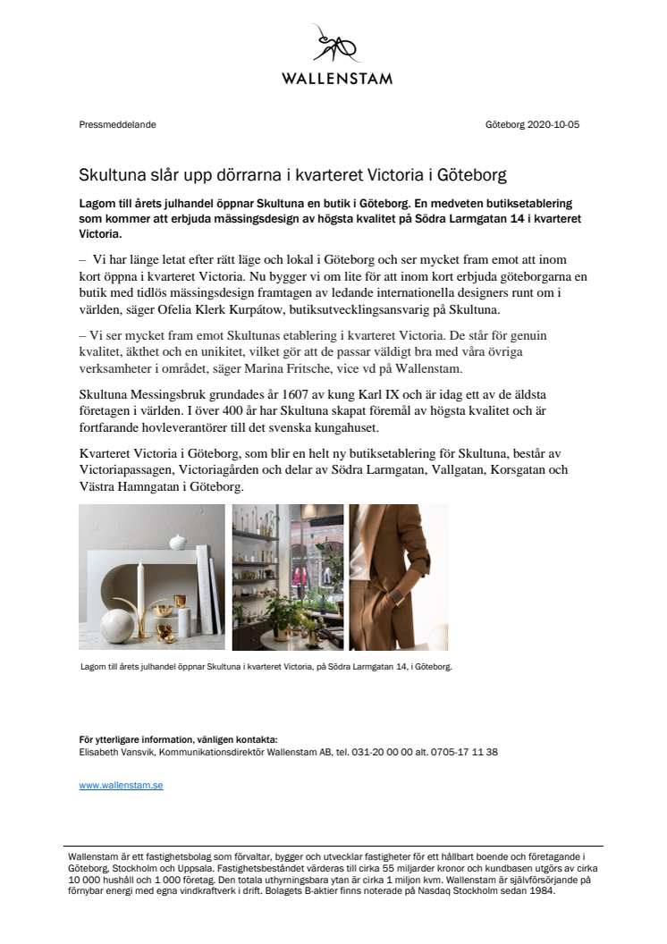 Lagom till årets julhandel öppnar Skultuna en butik i Göteborg. En medveten butiksetablering som kommer att erbjuda mässingsdesign av högsta kvalitet på Södra Larmgatan 14 i kvarteret Victoria.