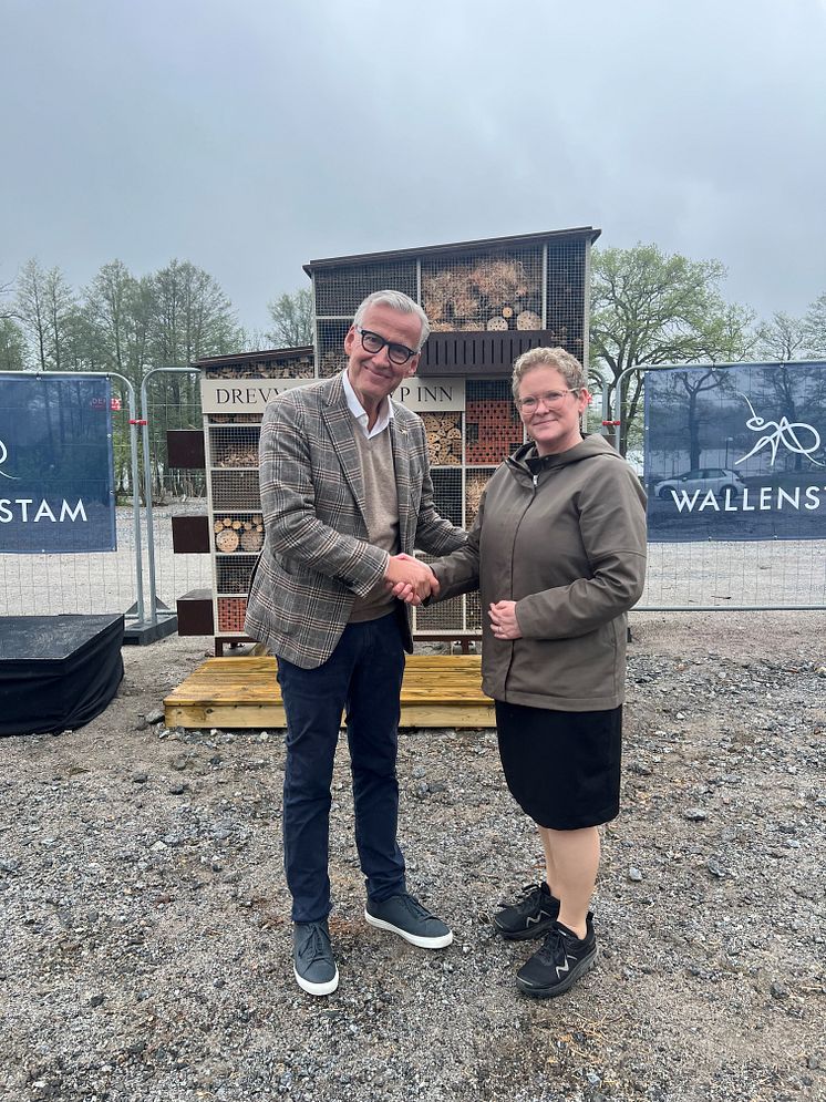 Idag startade Wallenstams nybyggnation Ädellövet genom att Karin Wanngård, finansborgarråd i Stockholm och Hans Wallenstam, vd för Wallenstam avtäckte insektshotellet Drevvikens Kryp Inn. En symbol för byggstarten av de 172 hyreslägenheterna längs Drevvikens strand i Larsboda, Farsta.
