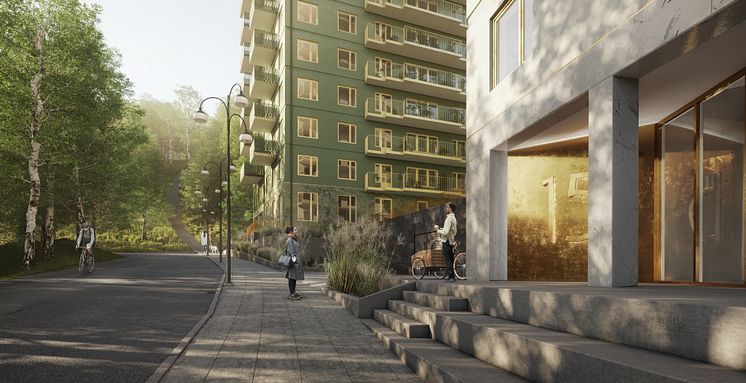 Idéskiss för ett av husen i första kvarteret som byggs i Kallebäcks Terrasser