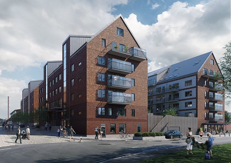 Lägenheterna i Kvarteret Väven fördelas i tre hus som med sin arkitektur knyter an till områdets vackra historiska industrimiljö. I entrévåningen i ett av husen planeras för en trivsam restaurang med utsikt mot Massetjärn.
