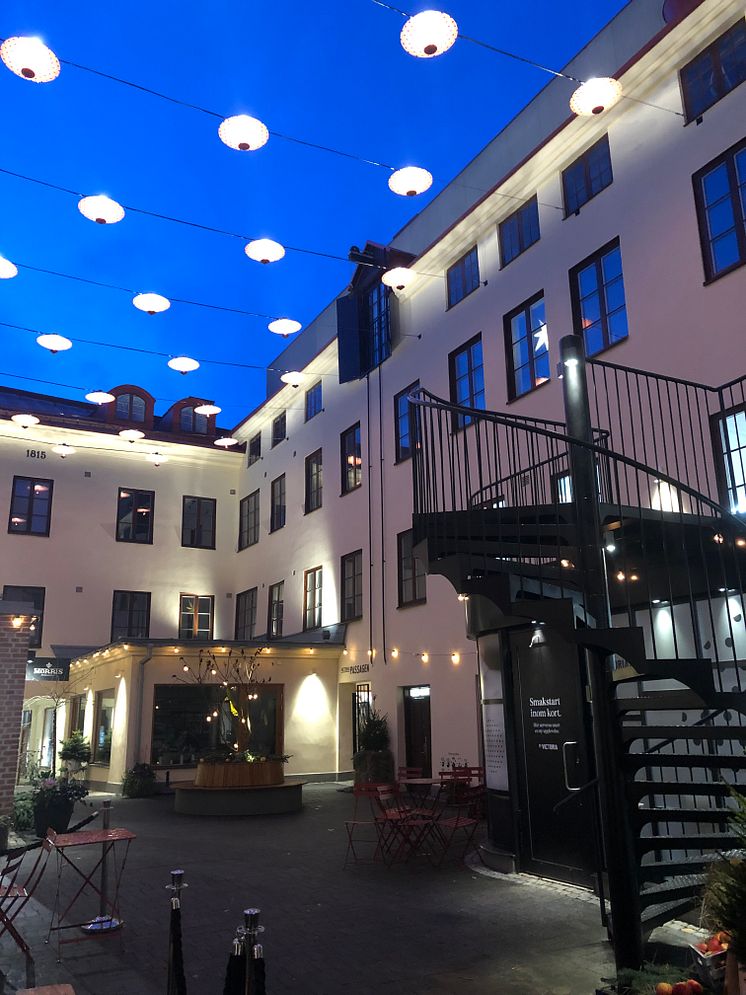 Victoriagårdens belysning i Göteborg är nominerad till Svenska Ljuspriset. Det stora antalet lysande armaturer skapar en magiskt fin himmel att upplevas inifrån gården.