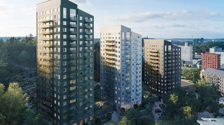 Nu har de sista nycklarna lämnats ut och 270 nyinflyttade hyresgäster är nu på plats i sina nya hem i Kvarter 11, Mejeristen i Kallebäcks Terrasser. Högst upp i området med en härlig utsikt över Göteborg ligger de tre husen placerade längs med Smörkärnegatan. Fullt utbyggt kommer Kallebäcks Terrasser som område att erbjuda 1 800 nya hem, ett lokalt torg med restauranger, caféer, närservice samt kontor, skola, förskolor och gym.