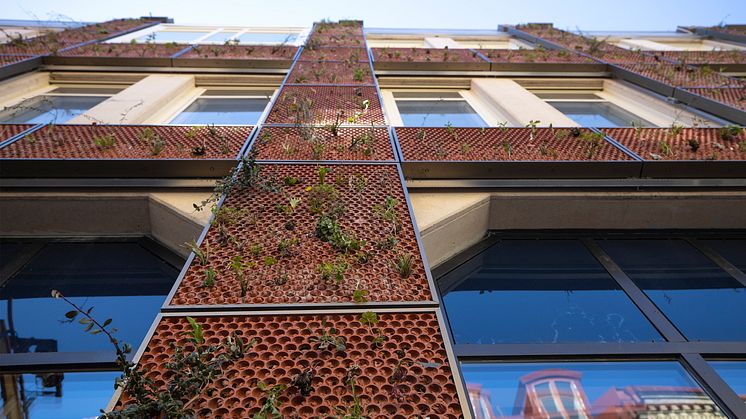 – Växtväggar är något vi kommer få ser mer och mer av i städerna framöver, de blir som vertikala små parker och gröna öar för såväl människor som olika pollinerare: bin och humlor. Dessutom har väggarna bullerdämpande egenskaper vilket uppskattas i stadsmiljön, säger Lars Höglund, vd för Butong.