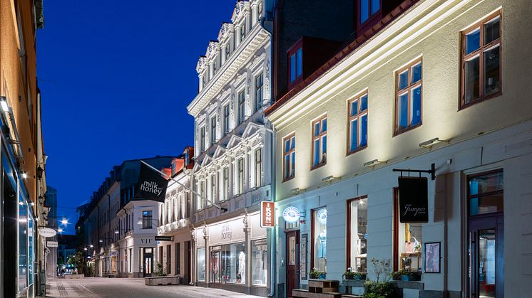– I samband med fasadrenovering och en allmän ansiktslyftning av flera av våra fastigheter inom Vallgraven passade vi på att bidra till mer ljus i centrala Göteborg. En satsning som exponerar våra hyresgästers verksamheter och våra fina fasader på ett bättre sätt, men även bidrar till en allmän trivsel och trygghet i gaturummet, säger Marina Fritsche, vice vd på Wallenstam.