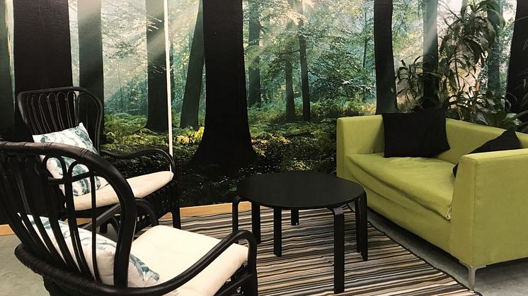 De nya lokalerna går i grönskans tecken dit både nya möbler, textilier och fototapeter flyttat in.