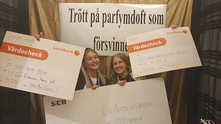 Amanda Andersson och Elin Eriksson från Fria Läroverk Karlstad ligger bakom UF-företaget AMIN UF som skördade stora framgångar på UF-mässan på Karlstad CCC. Elin vann kategorin årets säljare, företaget kom på en andraplats i kategorin årets affärsplan och vann kategorin årets digitala närvaro.