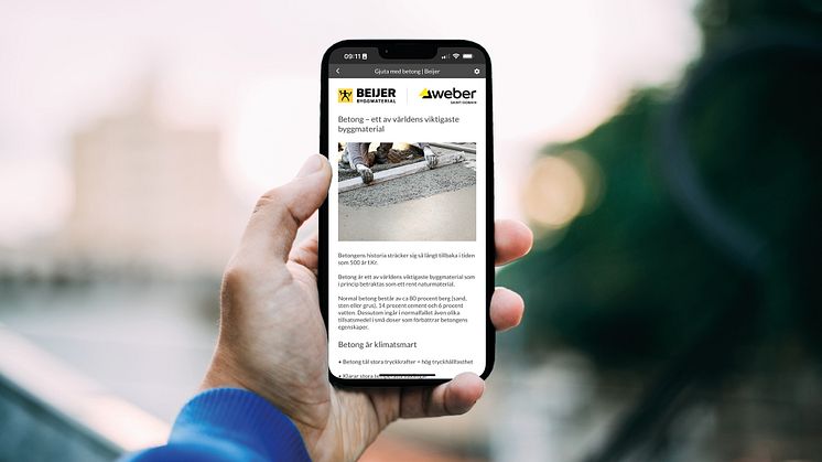 Nyligen har Weber i samarbete med Beijer tagit fram mikrokursen “Gjuta med betong” som nu 1500 medarbetare på Beijer har tillgång till i mobilen. Utbildningen är frivillig men bara några dagar efter lanseringen hade närmare 200 personer påbörjat utbildningen med gott resultat och positiv respons.