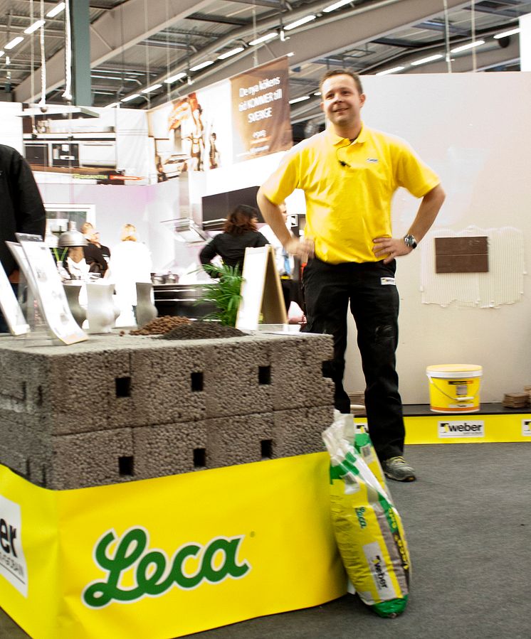 Weber ställer ut tillsammans med flera andra företag som hjälper till i tv-programmet Arga Snickaren. I montern ger Nina Hokkanen och Jörgen Svensson tips och råd samt visar hur man kaklar och staplar Leca® DSM byggblock - du får självklart prova, klämma och känna på produkterna.