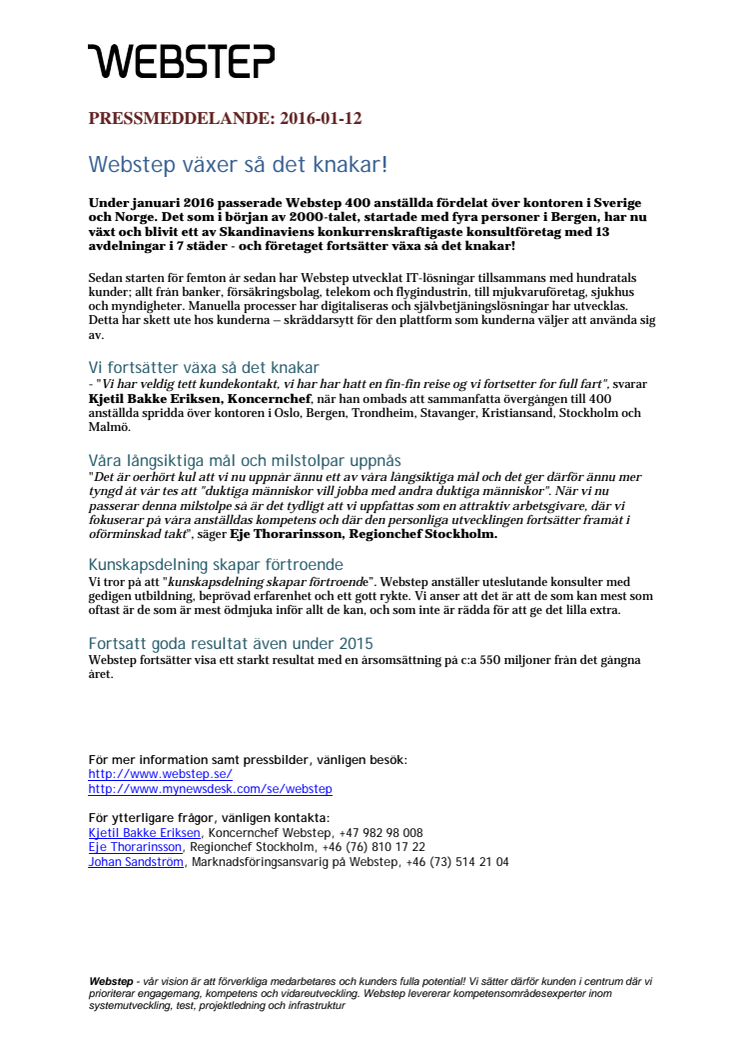 Vi tror på att "kunskapsdelning skapar förtroende". Webstep anställer uteslutande konsulter med gedigen utbildning, beprövad erfarenhet och ett gott rykte. Vi anser att det är att de som kan mest som oftast är de som är mest ödmjuka inför allt de kan, och som inte är rädda för att ge det lilla extra.