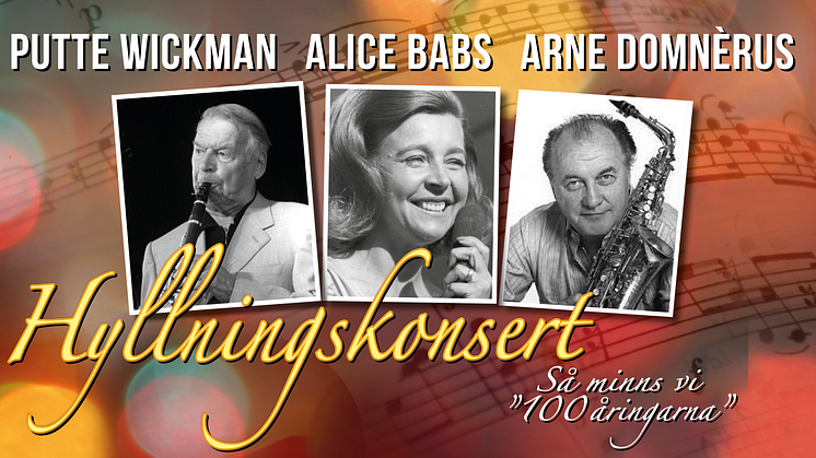 Hyllningsturné ”Så minns vi 100-åringarna" Putte Wickman, Alice Babs och Arne Domnérus runt om i landets större konserthus!