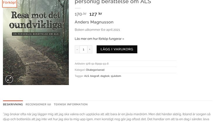 När Anders Magnussons självbiografiska bok ”Resa mot det oundvikliga – En personlig berättelse om ALS” lades upp som förköpskampanj i förlagets webbshop sålde man över 200 böcker på ett par dagar. Och detta innan boken ens var tryckt.