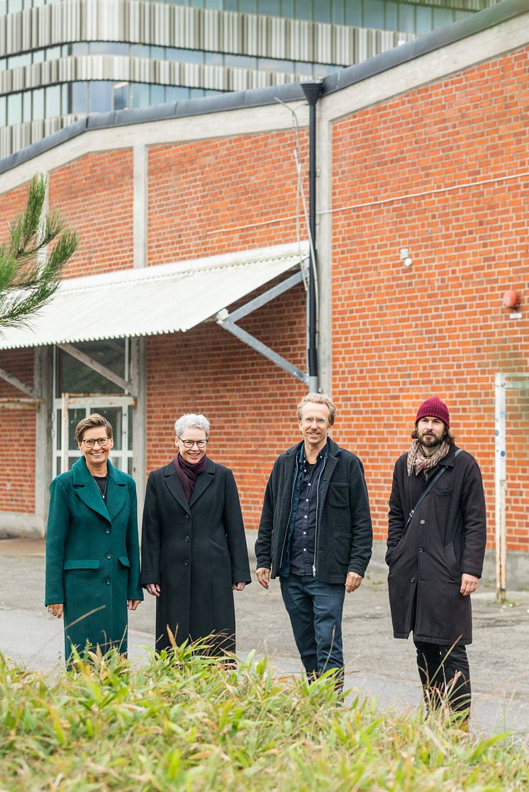 Från vänster: Ulrika Hallengren, vd för Wihlborgs, rektor vid Malmö universitet, Ola Jonsson, ansvarig arkitekt och partner på C.F. Møller Architects och Björn Förstberg, handläggande arkitekt på (Förstberg Ling)