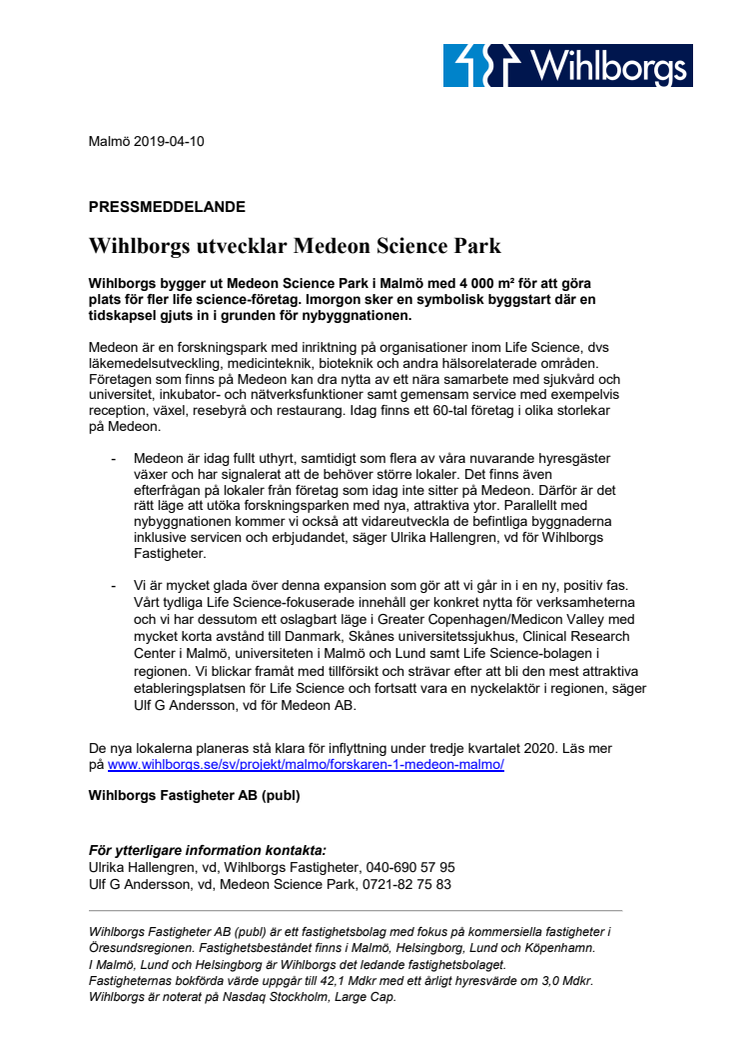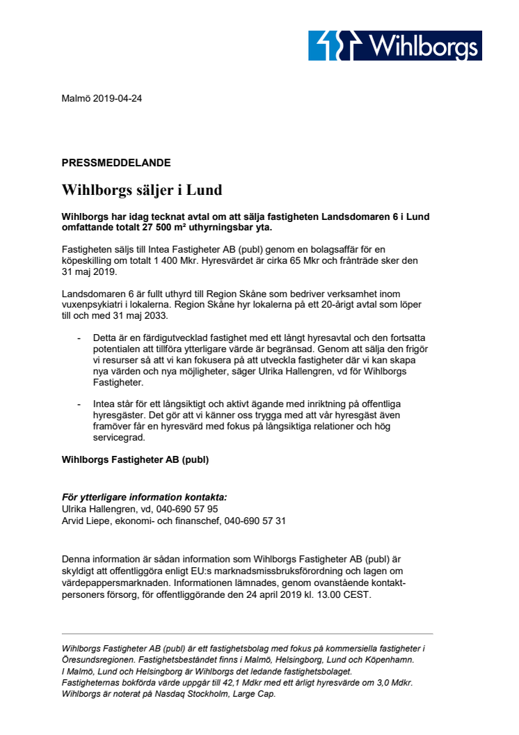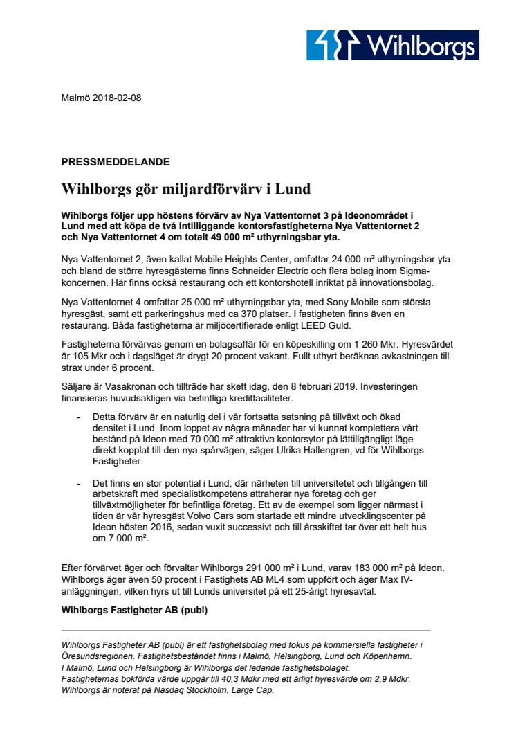 Mejl skickat till __email__. Klicka på länken i mejlet för att följa Wihlborgs Fastigheter.