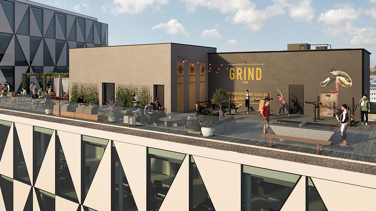 Takterrass med utomhusarbetsplatser, gym och fantastisk utsikt