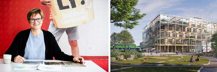 Sofia Ehlde, global innovationschef för Oatly. Visionsbild på Wihlborgs fastighet Space i Science Village, där Oatly under 2023 startar ett nytt forsknings- och innovationscentrum.