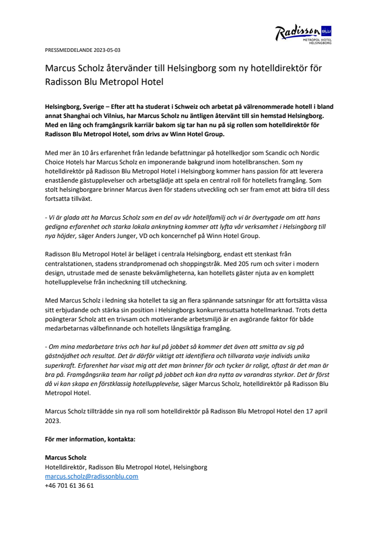 2023-05-03 Marcus Scholz återvänder till Helsingborg som ny hotelldirektör för Radisson Blu Metropol Hotel.pdf