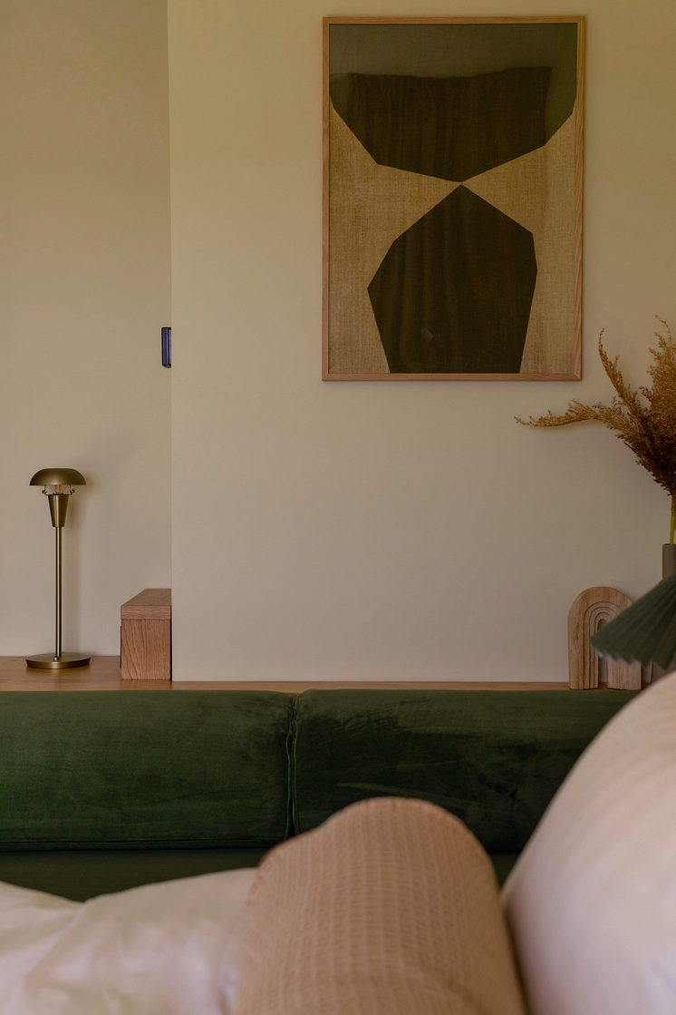 Rummen på The Dock är formgivna med omsorg för att skapa balans mellan vila, funktion och närvaro. Med en harmonisk färgpalett, ljusa ekytor och naturliga material speglar interiören den nordiska naturens lugn, samtidigt som retroinspirerade detaljer och djärva inslag adderar en internationell känsla.