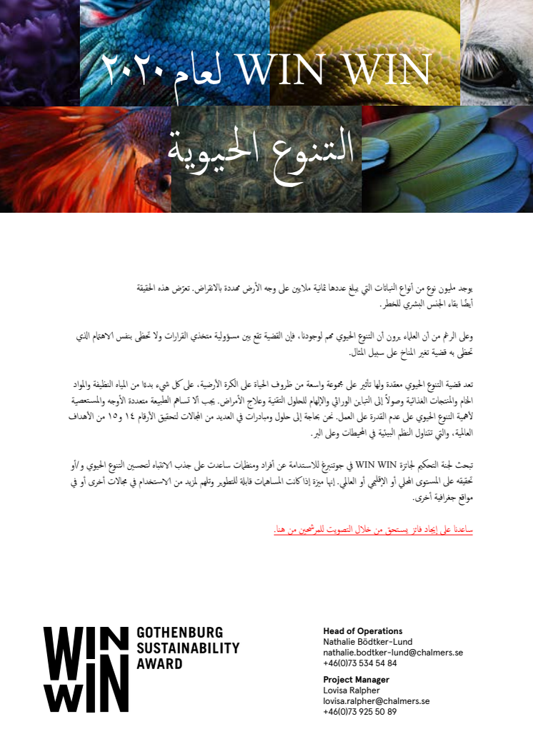 موضوع جائزة WIN WIN لعام 2020 – التنوع الحيوي