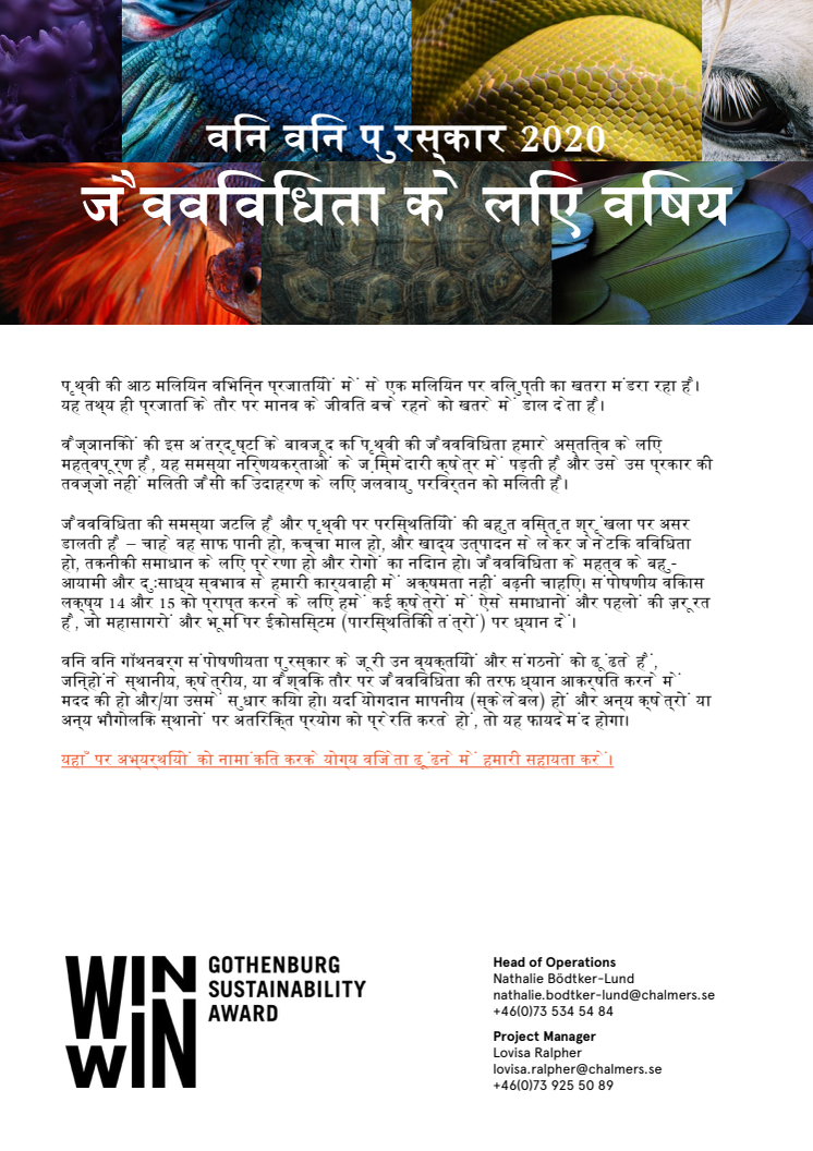 विन विन पुरस्कार 2020 – जैवविविधता के लिए विषय