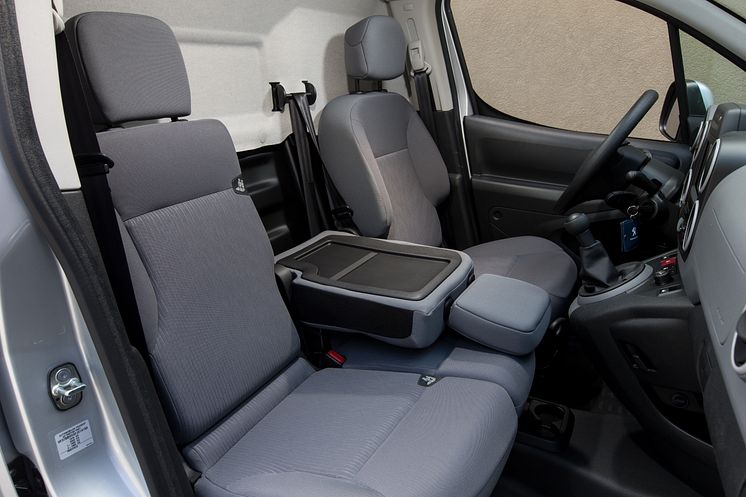 Flexibilitet är något av ett ledord för Peugeot Partner och i den nya modellen erbjuds möjlighet att välja framsäte med tre platser och därmed få ett ännu större lastutrymme.