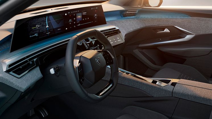 Nya Peugeot i-Cockpit präglas av en 21-tums panoramaskärm placerad framför föraren och ovanför instrumentbrädan, vilket skapar en svävande känsla. En ny kompakt ratt och uppdaterade Peugeot i-Toggles-reglage som är anpassningsbara efter förarens preferenser, är också några av nyheterna i den nya förarmiljön.