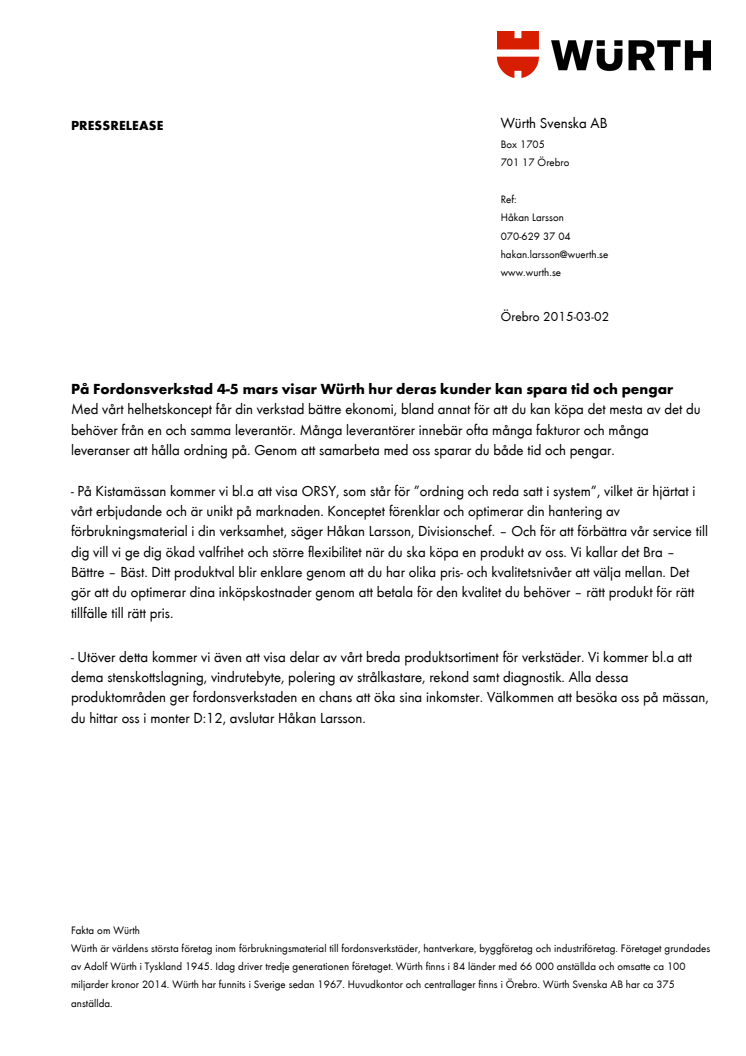 På Fordonsverkstad 4-5 mars visar Würth hur deras kunder kan spara tid och pengar.