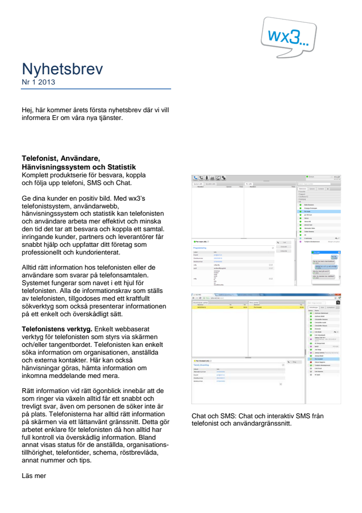 Telefonist, Användare, Hänvisningssystem och Statistik med nytt grafiskt gränssnitt och utökade funktioner.