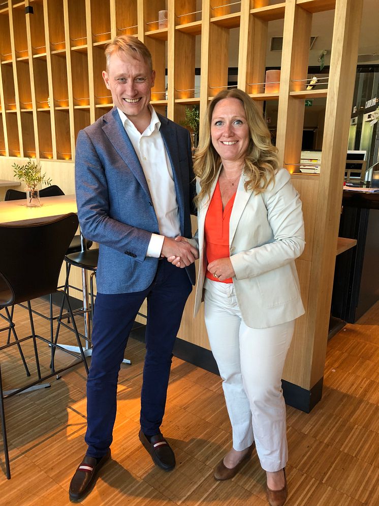 Mikkel Sandvik, koncernchef Mestergruppen och Karin Eriksson, VD XL-BYGG Sverige