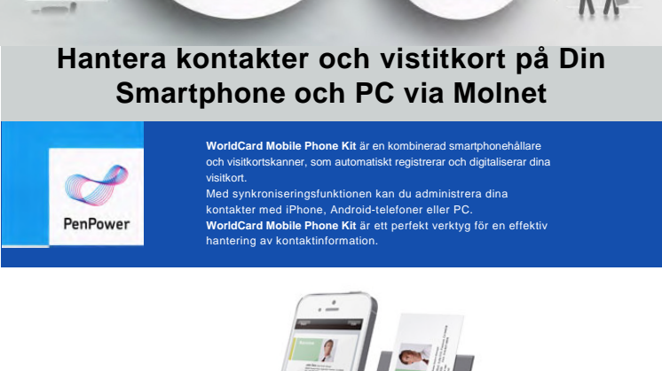 WorldCard Mobile Phone Kit är en kombinerad smartphonehållare och visitkortskanner, som automatiskt registrerar och digitaliserar dina visitkort.Med synkroniseringsfunktionen kan du administrera dina kontakter med iPhone, Android-telefoner eller PC och Mac.