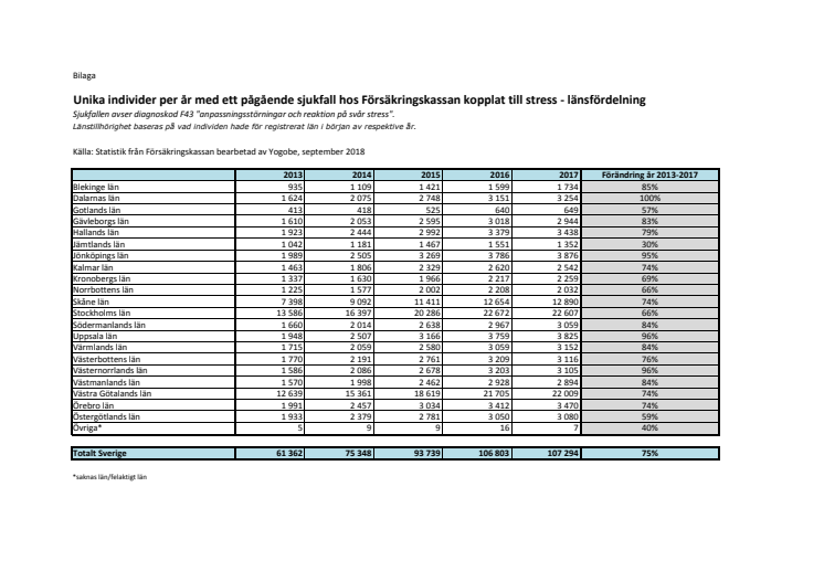 Bilaga_sjukskrivna individer pga stress_per län_2013-2017