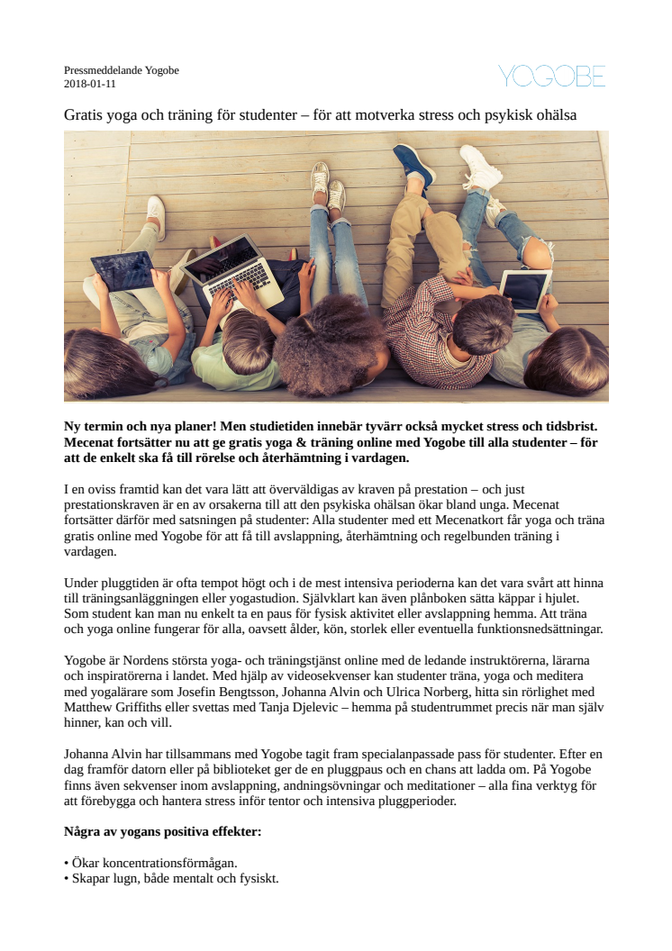 Ny termin och nya planer! Men studietiden innebär tyvärr också mycket stress och tidsbrist. Mecenat fortsätter nu att ge gratis yoga & träning online med Yogobe till alla studenter – för att de enkelt ska få till rörelse och återhämtning i vardagen.