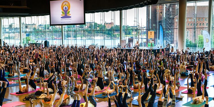Satu Tuomela från Team Yogobe ger 800 yogisar en stunds yinyoga.