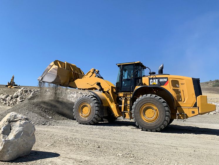 Hjullastaren Cat 982M var huvudmaskinen i grenen "Load me up" som gick ut på att snabbt och exakt lasta en dumper med material och att pricka exakt 30 ton med hjälp av Caterpillars vågsystem, CPM i hjullastaren.