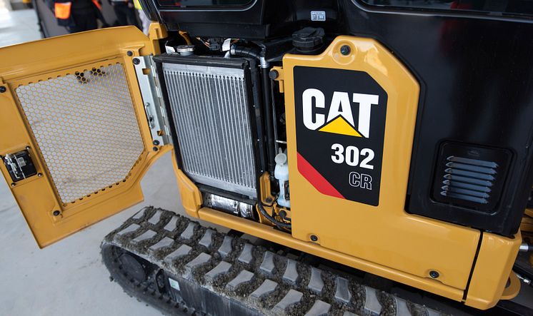 Öppningsbar sidolucka för enkel åtkomst av servicepunkter i Caterpillars nya minigrävare, Next generation.