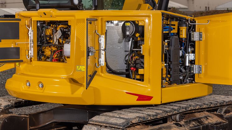 Den nya maskinen drivs av den beprövade Cat C3.3B-motorn på 51,8 kW som uppfyller normerna för EU steg V. Förbättringar av det hydrauliska systemet i kombination med automatiska tomgångs- och avstängningsfunktioner förbättrar maskinens effektivitet, sänker driftskostnaderna och ökar kostnadseffektiviteten.